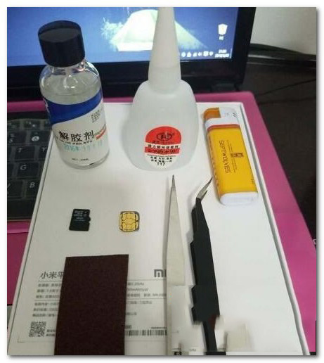 打火机、砂纸、mirco-SIM卡、内存卡、502胶、解胶剂,如图所示。