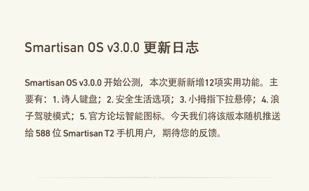 详细的锤子系统(SmartisanOS)v3.0.0公测版的更新内容如下: