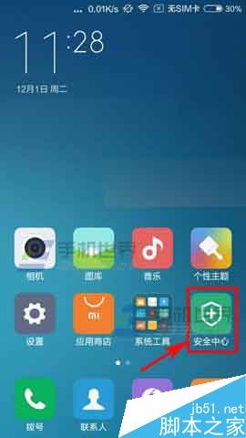 1)首先我们先打开【安全中心】,然后点击左下方的【电量】。(如下图)