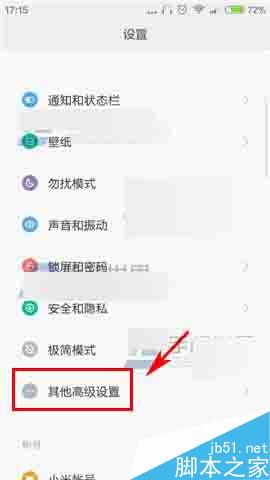 1)首先我们先打开【设置】,然后找到【其他高级设置】。(如下图)