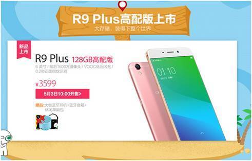 OPPO R9 Plus高配版的售价为3599元,其搭载了6英寸全高清AMOLED显示屏、美国高通公司骁龙652 1.8GHz八核64位处理器和4GB RAM,并拥有超大128GB ROM,支持最大128GB microSD卡扩展,机身存储空间堪比一些超极本电脑!