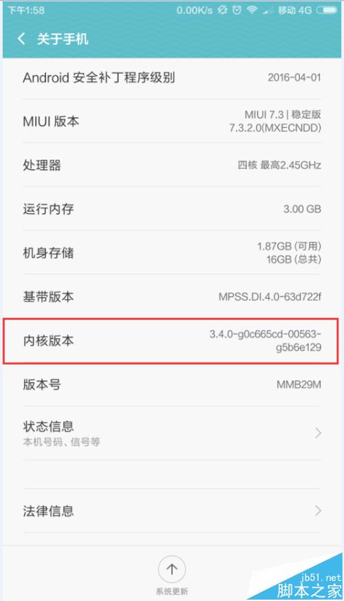 进入关于手机之后在从中从中找到内核版本;