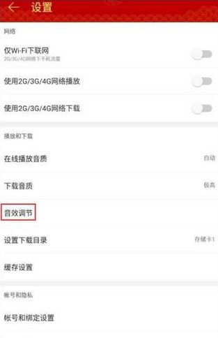 一、为了听到无损音乐并方便调节我们使用网易云音乐作为试音平台,在网易云音乐APP设置界面选择【音效调节】选项。