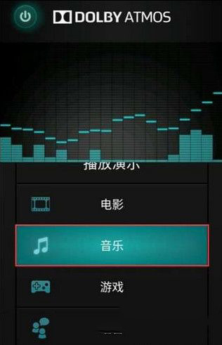 三、进入我们熟悉的杜比音效设置界面,选择【音乐】