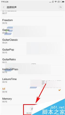 2)接着点击【手机铃声】,然后挑选自己喜欢的铃声即可,也可以点击下方的【通过其他程序选择】。(如下图)