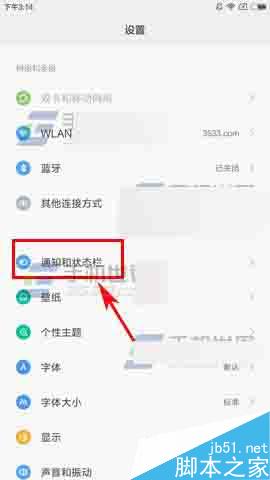 1)首先我们先打开【设置】,然后找到【通知和状态栏】,打开后我们再点击【自定义运营商名称】。(如下图)