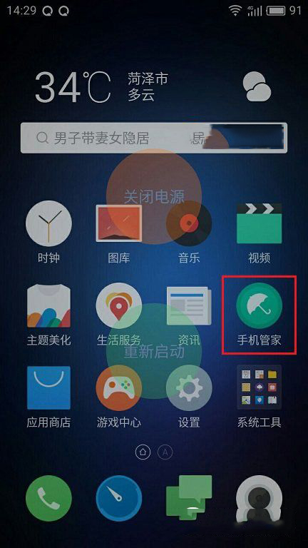 一、在魅蓝3S桌面找到并点击进入「手机管家」,如图。