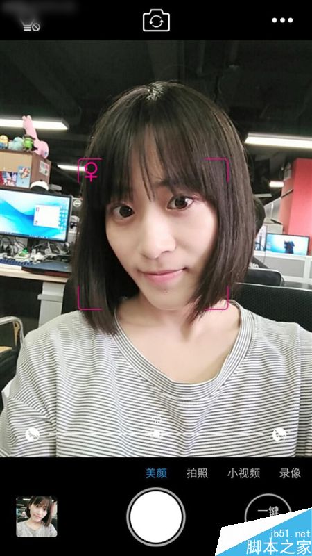可以看到,开启了美颜的效果还是非常不错的,皮肤细腻白皙,完美的把脸上的痘痘给磨平了。