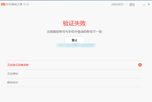 7、注意:刷入开发版后,必须联网登录已审核通过解锁的小米账号,否则无法正常解锁!会出现如下错误