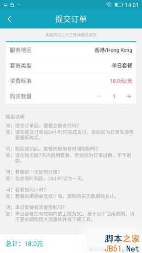 同时,出国助手还包括漫游套餐的购买,选定目的地和购买数量之后就可以提交订单,支付成功后便可在目的国家/地区启用套餐享受境外漫游上网服务,实际操作过程十分简单明了。