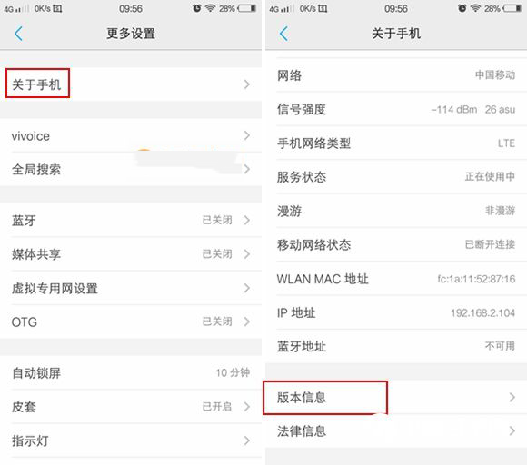 二,然后再进入【关于手机】页面,在其下方找到【版本信息】,点击进入,如下图所示。