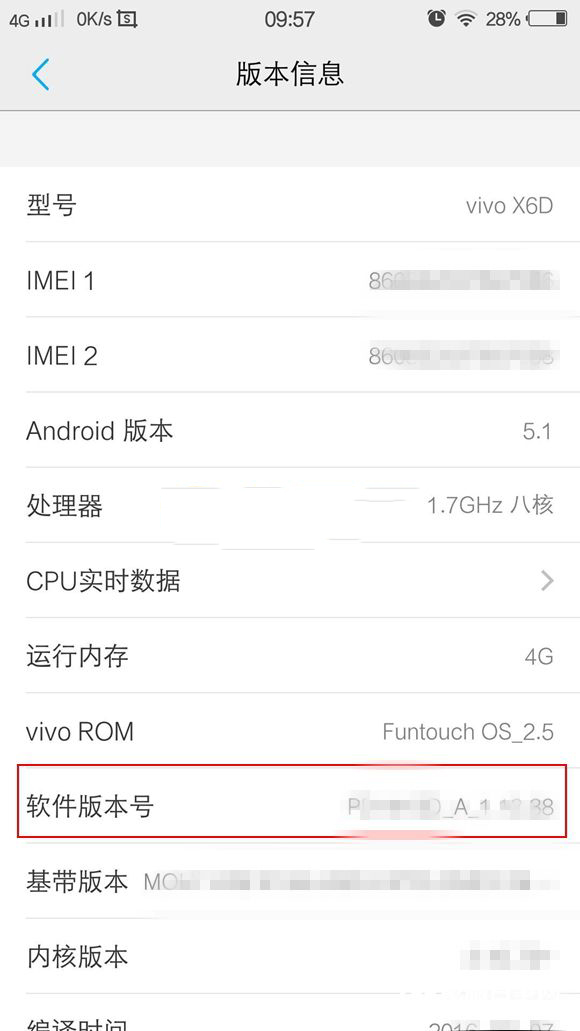 三、接下来在关于版本信息界面中,连续点击7次“【软件版本号】”即可激活开发者选项,如下图所示。