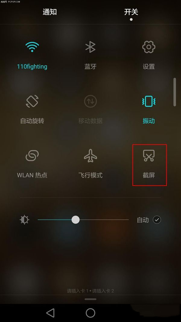 打开荣耀8需要截屏的界面,然后用手指屏幕向下滑动调出通知栏下拉屏幕,然后切换到【开关】选项,点击下方的【截屏】即可快速截图,如下图所示。