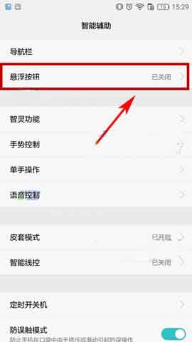 1)打开手机【设置】,找到【智能辅助】,打开后点击【悬浮按钮】。(如下图)