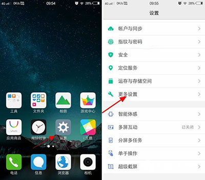 一,首先依次点击进入vivo X7 Plus主界面的「设置」-「更多设置」,如图所示。