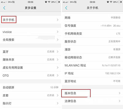二,继续点击进入「关于手机」-「版本信息」选项,如图所示。