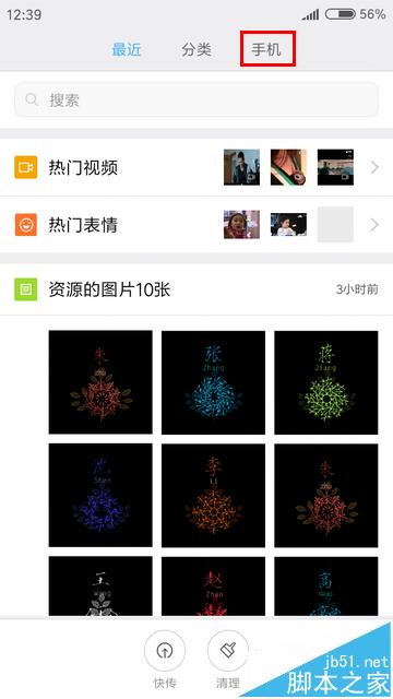 2、由于“热门视频”和“热门表情”的具体信息需要联网来获取,因此,对于部分朋友来说,不但不觉得这两项内容吸引人,反而会觉得很鸡肋,白白占用了页面空间,显得页面不是那么清爽……那么,怎样才能还“文件管理”页面一个清爽,不再显示“热门视频”和“热门表情”呢?
