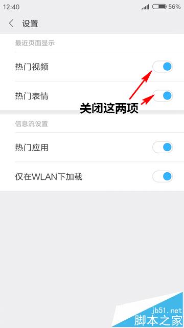 5、最后,在设置中关闭“热门视频”和“热门表情”两项就可以了。