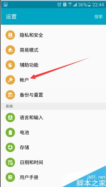 点击账户 按钮,进入账户 设置界面