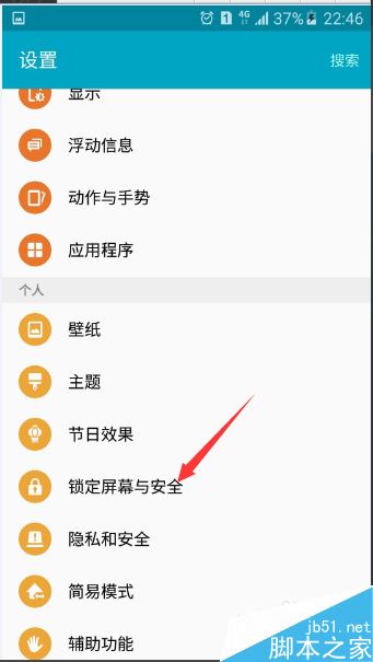 点击锁定屏幕与安全