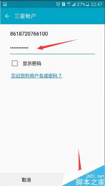 输入创建的三星账户的密码 点击 确定