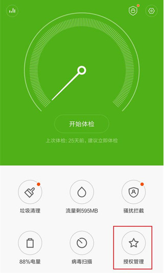 1、主屏上找到设置——安全中心,打开安全中心。进入“授权管理”。