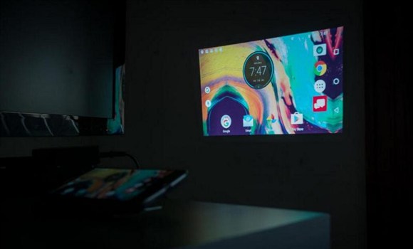 带上投影仪模块后,手机能投出清晰锐利的图像