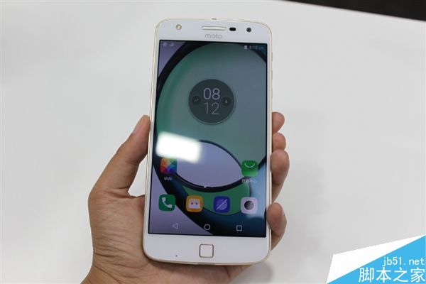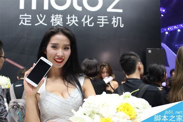 下面是媒体送上的现场图,除了爆乳美女抢镜,正面来看,Moto LOGO也有不同,Z Play在扬声器下方,Z则是在指纹HOME上方。