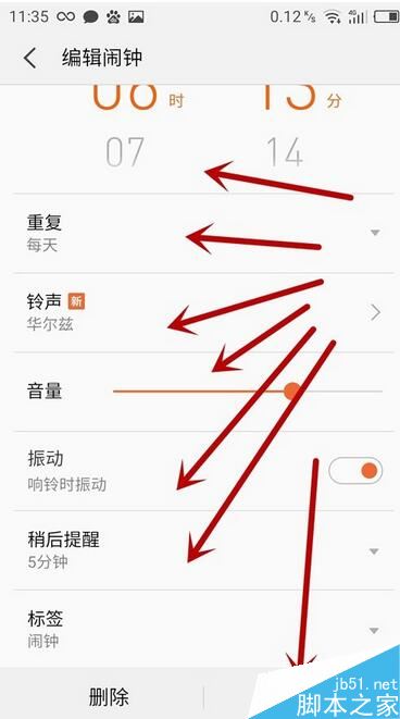 点击进去可以设置任意的时刻,具体哪天,用的铃音是什么,音量多大,带不带震动,需不需要提醒,最后保存。