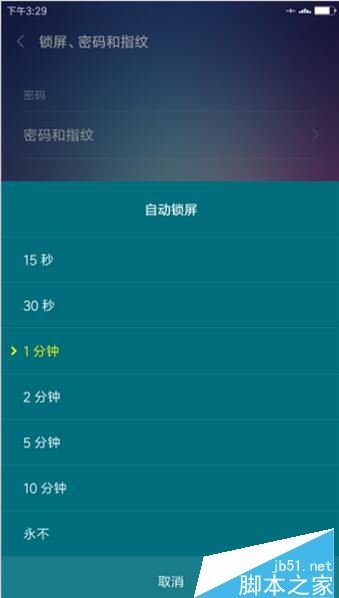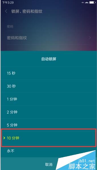 4、点击锁屏后,在自动锁屏窗口,看到有其他时间可供选择。如图所示;