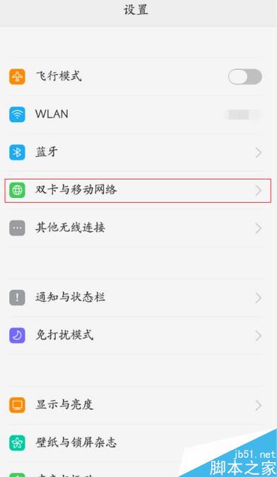 通过手机设置—点击双卡与移动网络。