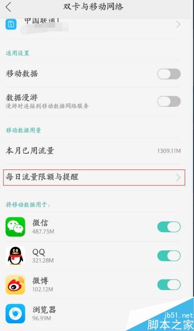 进入每日流量限额与提醒—开启每日限额功能。