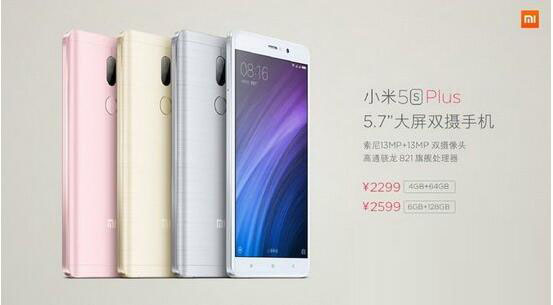 在小米2016秋季新品发布会上,除了小米5S之外,小米还发布了一款5.7英寸大屏版的小米5S Plus。其中4G+64G版2299元,6G+128G版2599元。
