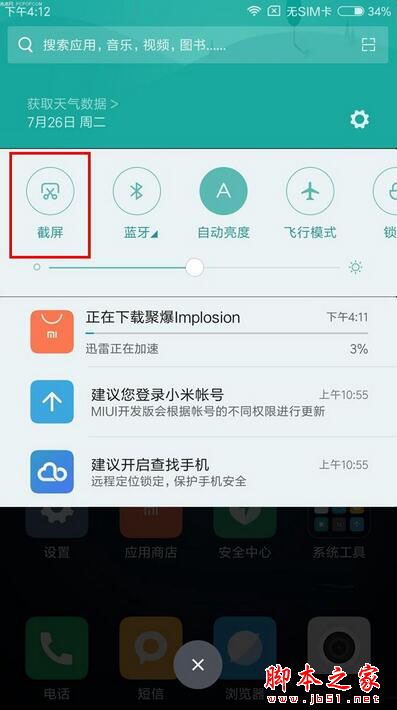 ②小米5s截图方法二:下拉菜单