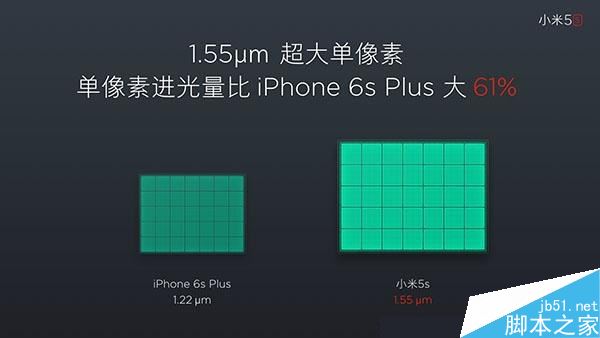 从小米官方公布的配置来看,小米5S配备了一颗1200万像素的索尼IMX378摄像头,尽管像素不高,但拥有F/2.0光圈,以及1/2.3英寸感光元件,单个像素尺寸达到1.55微米,比iPhone 6S Plus大61%。
