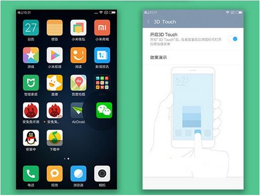 其实,小米5s的3D Touch功能还未开发完全。首先,相比于iPhone来说,小米5s的3D Touch不支持调节压感的敏感度,这导致用户无法选择一个适合自己的用力大小。