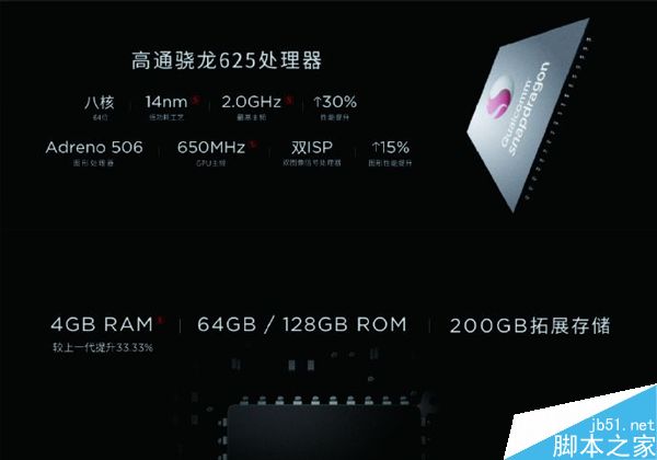 nubia Z11 mini S搭载高通骁龙625八核处理器,有4GB + 64GB和4GB + 128GB两个版本,并且支持最大200GB的存储卡。支持双卡双待全网通,内置3000mAh电池。