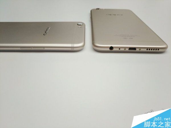 两者相比,R9s外观上最大的区别就是采用了“微缝天线”的解决方案。将原来1.5毫米-2毫米宽的天线,变成了3条宽度只有0.3毫米的天线。新的天线形式使总天线面积降低了60%,机身金属占比提高至98.8%,使得整部手机更加浑然一体。