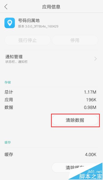 点击应用程序管理--全部--号码归属地,清除数据后,一键清理后台程序即可。