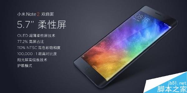 官方数据显示,小米Note 2采用了新一代5.7英寸OLED柔性屏,拥有110% NTSC高色彩饱和度和100000:1超高对比度。