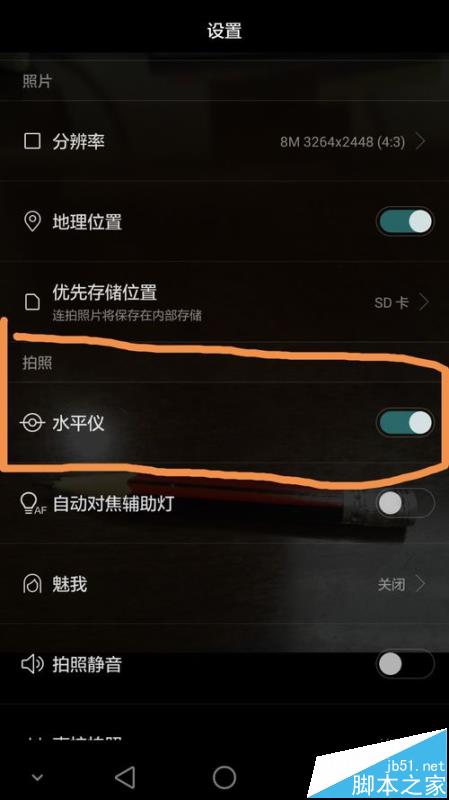 5、如果想出现“水平仪”,就从上方橙圈点击进入。