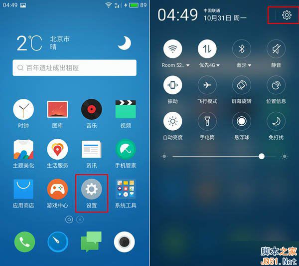 一.首先打开魅蓝5的「设置」,可以在桌面或者顶部下拉菜单中,快速找到,点击打开即可,如下图所示。