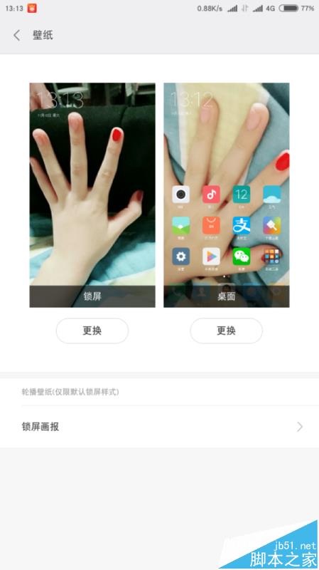 点击进去,会有锁屏和桌面两个选项,可以自定义也可以去主题商店里下载。重点是轮播壁纸,不过目前只支持锁屏哦,在这里面有许多的壁纸类别你可以选择。