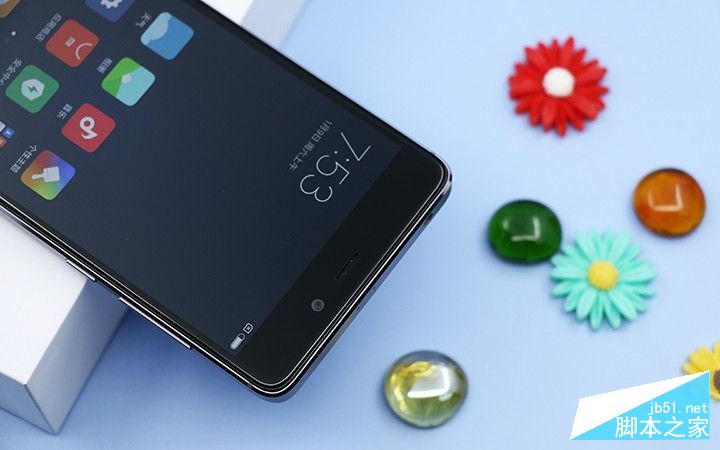 红米4的正面设计的比较规整,上面是光感、听筒和500万像素的前置摄像头,黑色版的光感看上去不是很明显。