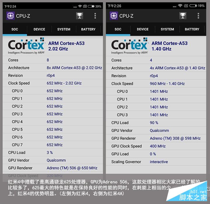 红米4中搭载了是高通骁龙625处理器,GPU为Adreno 506,这款处理器相比大家已经了解的比较多了,625最大的特色就是在保持良好的性能的同时,在耗能上相当的少,所以在续航上,红米4的优势明显。