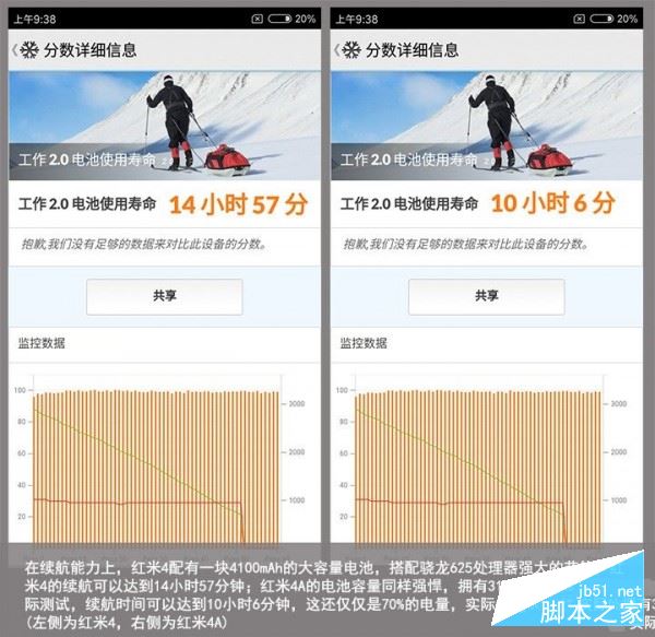 在充电速度上,两款手机的速度都一般,红米4的充电标准是5V2A,红米4A标准是5V1A,都不具备快充功能,不过大容量电池很好的弥补的这一点。