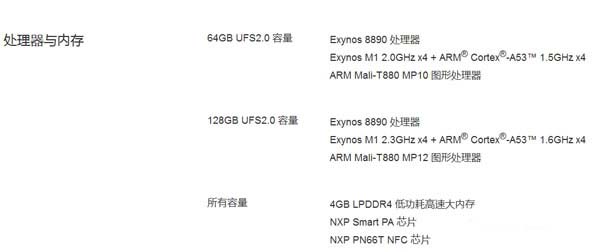 从魅族官网可以看到,魅族PRO6 Plus标准版64GB容量使用的Exynos8890处理器是4颗2.0GHz的核心,和4颗1.5GHz的核心,并使用了ARM Mali-T880 MP 10图像处理器。