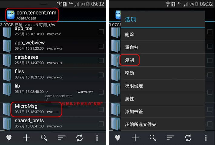 这样我们就将手机内存文件中的MicroMsg文件夹复件保存到了手机SD卡中。