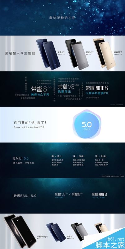 现在荣耀手机官方宣布,今年发布的三款荣耀旗舰,荣耀8、荣耀V8、荣耀NOTE 8,都迎来了EMUI 5.0,其中荣耀8/V8今日起开始推送,荣耀NOTE 8则是从2017年1月开始公测!