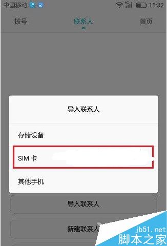 二、导入联系人的方式有三种:存储设备、SIM卡、其他手机,这里我们通过SIM卡讲联系人导入,如图所示: